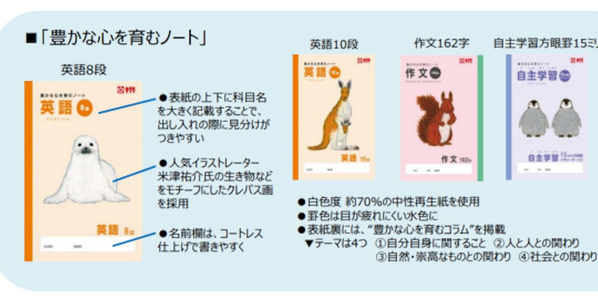 新製品 人気イラストレーターのクレパス画を採用したオリジナル学習帳に新柄4点