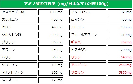 マカ アルギニン 含有 量