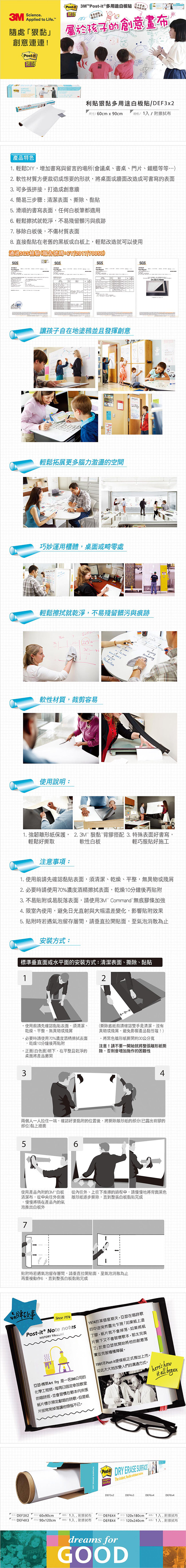 商品 3m Post It 無痕多用途白板貼1x90cm Def4x3 隆泰365商城 辦公用品 辦公文具 文具批發